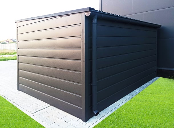 A DELUX kivitelű fém kerti tároló (más néven lemez tároló vagy trapézlemez kerti tároló) alapára már tartalmazza a gyártást, a szállítást és az összeszerelést.