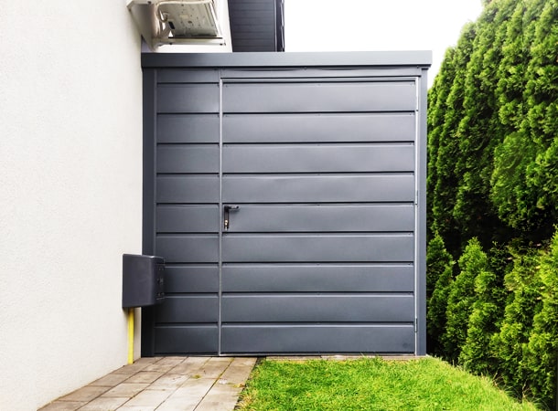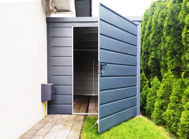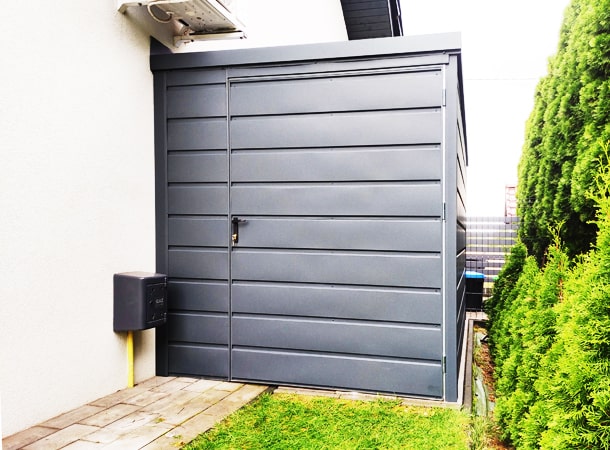 A DELUX kivitelű fém kerti tároló (más néven lemez tároló vagy trapézlemez kerti tároló) alapára már tartalmazza a gyártást, a szállítást és az összeszerelést.