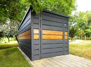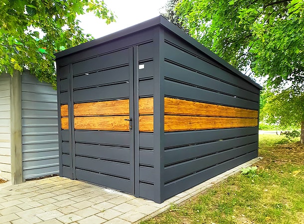 A DELUX minőségi kültéri kukatároló ára tartalmazza a gyártást, szállítást, összeszerelést és az épület rögzítését is az általad megfelelően előkészített alaphoz.