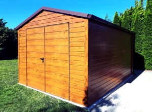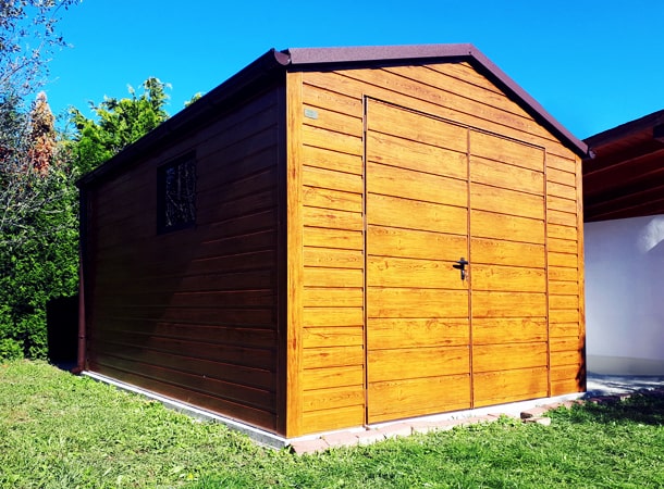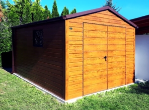 Színek: világos aranytölgy (falak, kapu), matt csokoládébarna BTX8017 (tető)