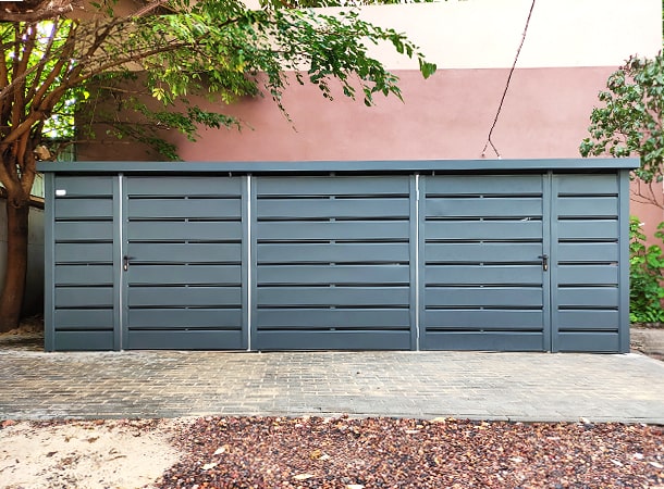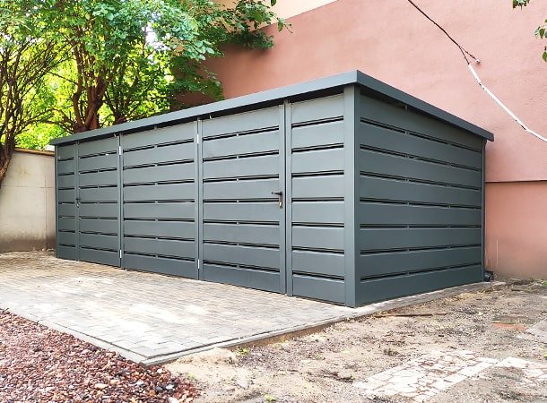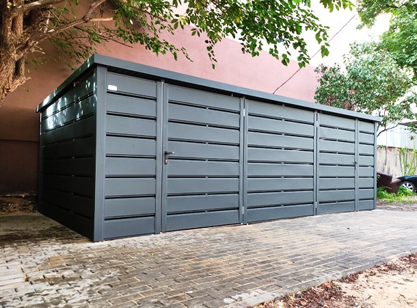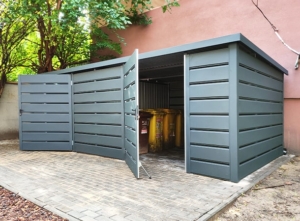 A DELUX minőségi kültéri kukatároló ára tartalmazza a gyártást, szállítást, összeszerelést és az épület rögzítését is az általad megfelelően előkészített alaphoz.