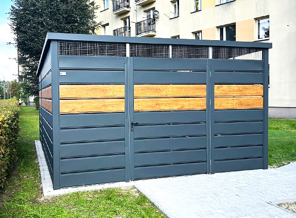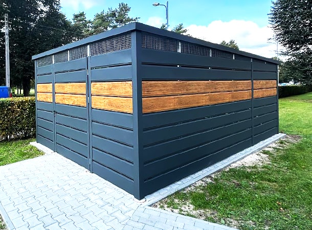 A DELUX minőségi kültéri kukatároló ára tartalmazza a gyártást, szállítást, összeszerelést és az épület rögzítését is az általad megfelelően előkészített alaphoz.